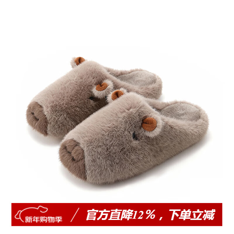 朴西棉拖鞋女款冬季2025新款室内家居可爱卡皮巴拉毛绒情侣棉拖鞋 暮光灰 【步履生温】 42-43 (适合41-42)