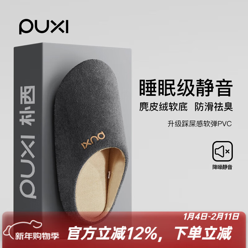 朴西踩屎感棉拖鞋女款防水冬季室内居家加绒保暖静音简约情侣棉拖鞋男 黑色 【经典百搭色系】 44-45 适合(43-44)