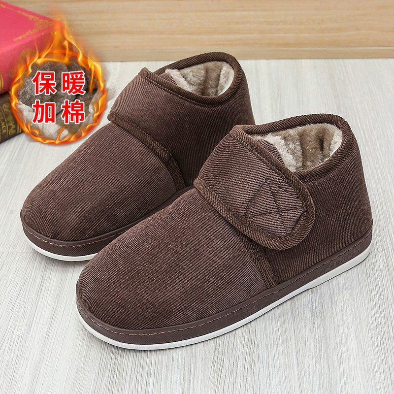 手工老棉鞋魔术贴宽松脚胖脚肿中老年男士大码老人高帮窝窝棉拖鞋