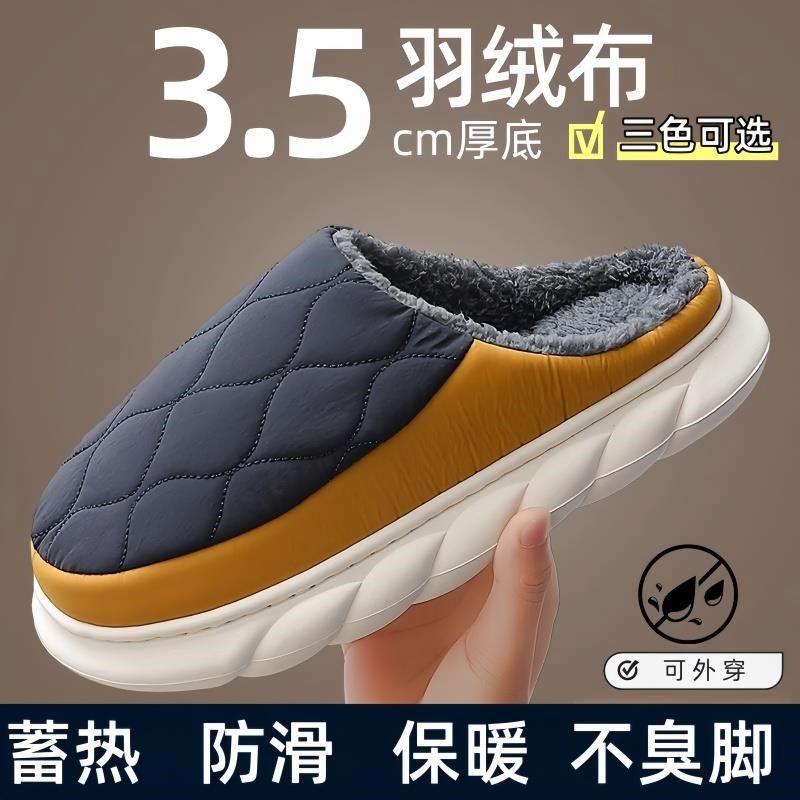 羽绒棉拖鞋男士冬季2024新款特大码室内家居厚底防滑大号保暖棉拖