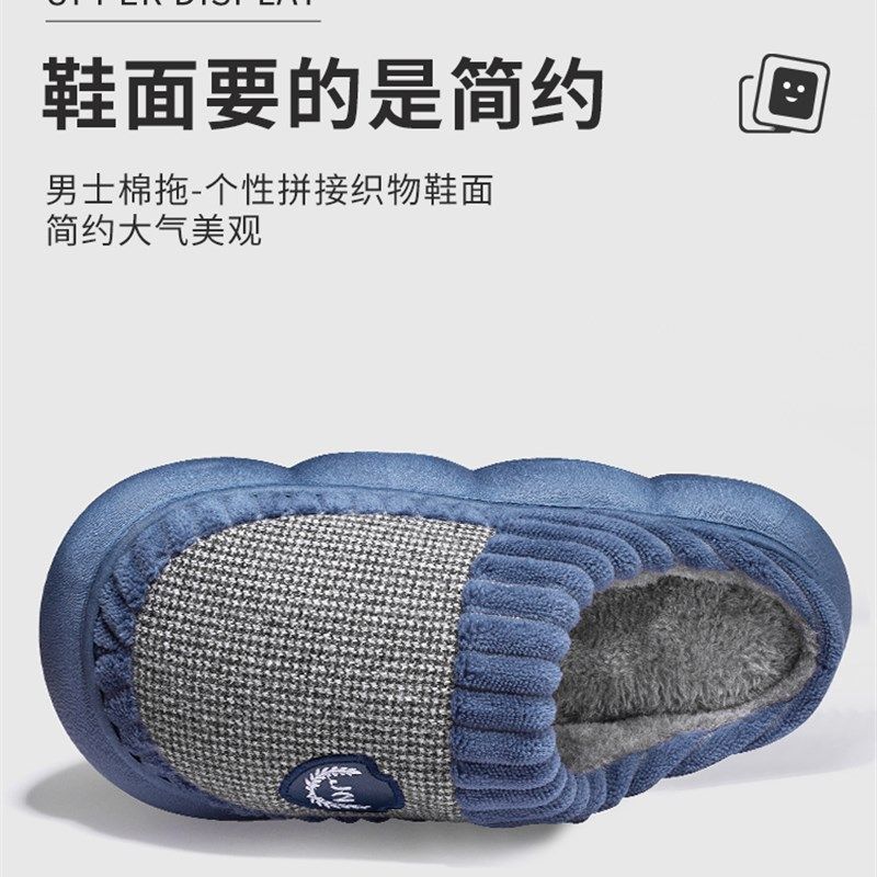 朴西加绒包跟软底棉拖鞋女冬季新款保暖室内家居防滑情侣棉拖男士