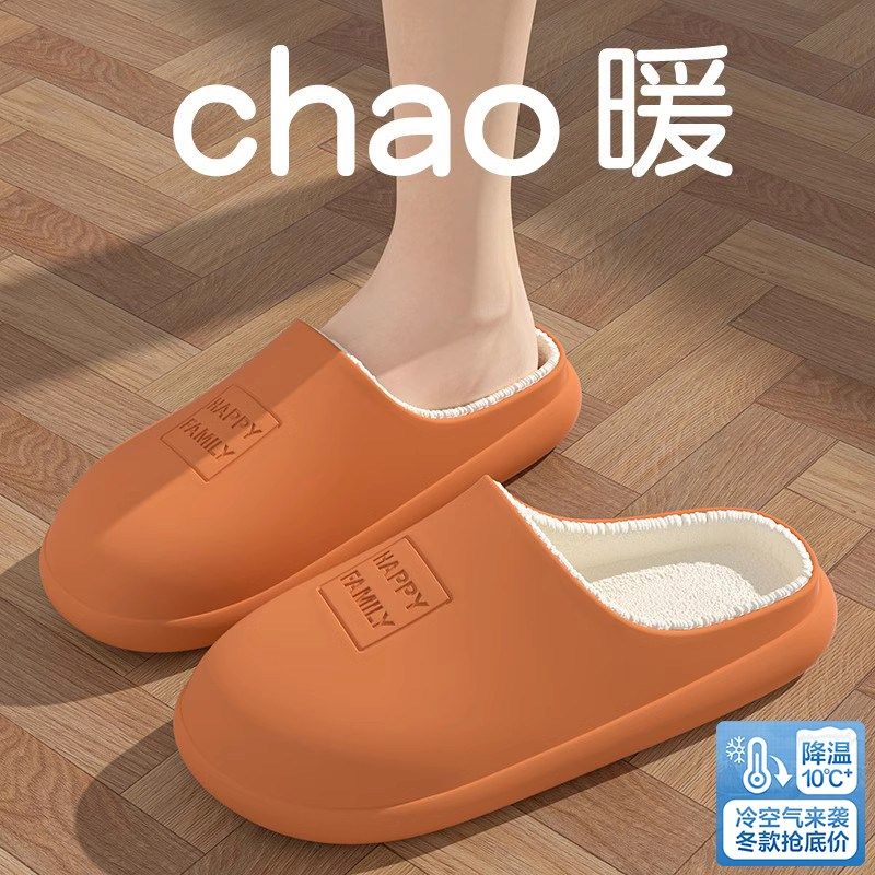 秋冬季新款踩屎感棉拖鞋女士居家室内家用地板防滑防水保暖棉鞋男