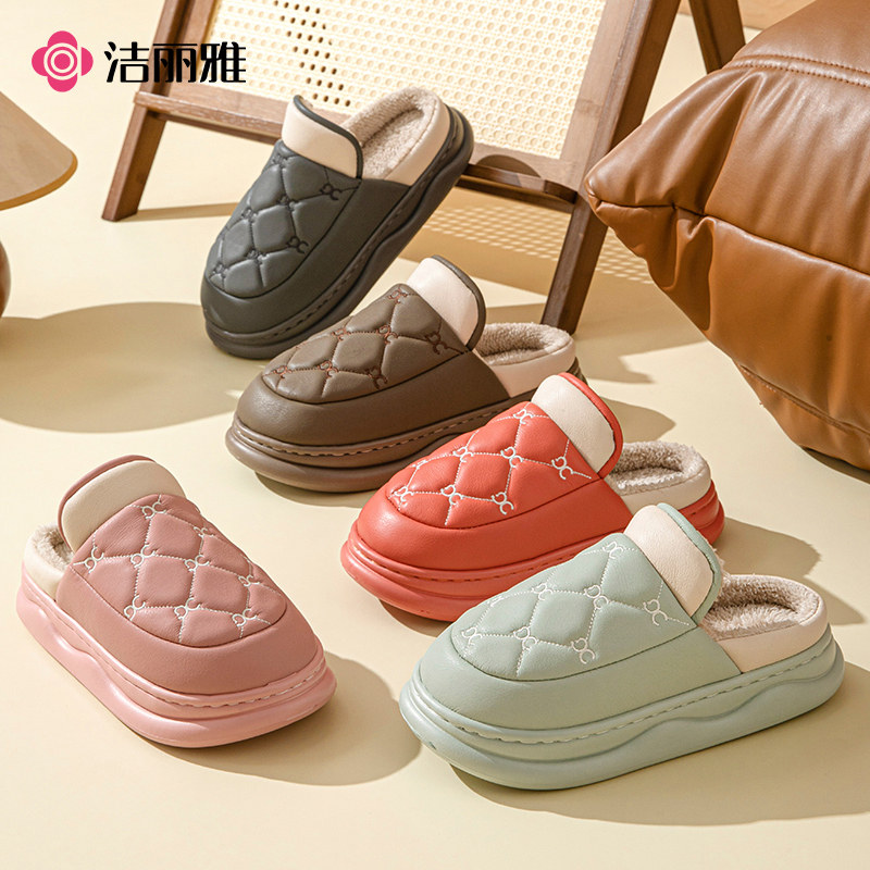 洁丽雅棉拖鞋女2025新款冬季保暖居家室内防滑防水家用加厚情侣款
