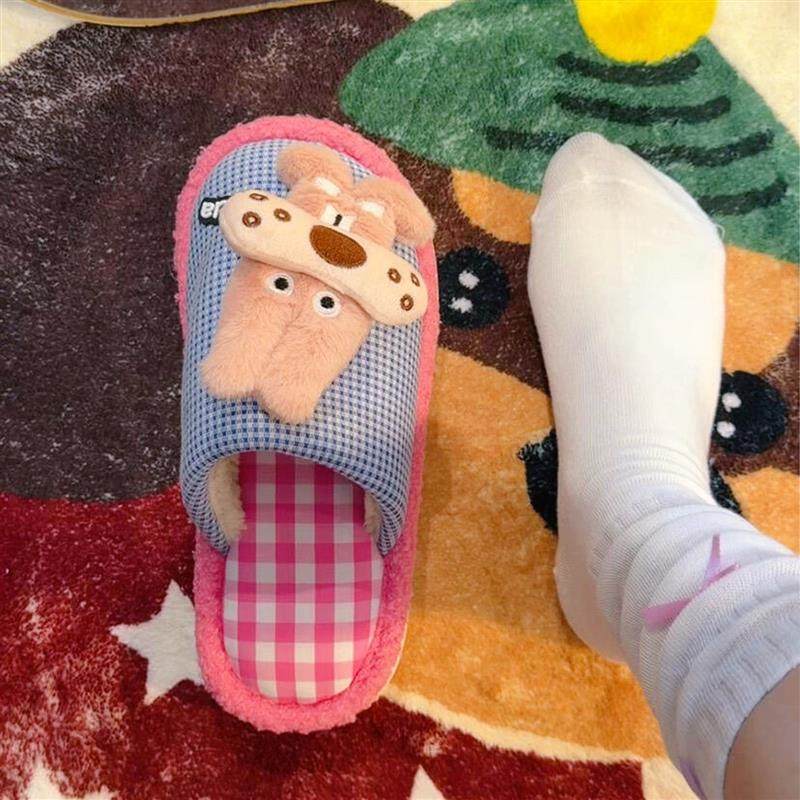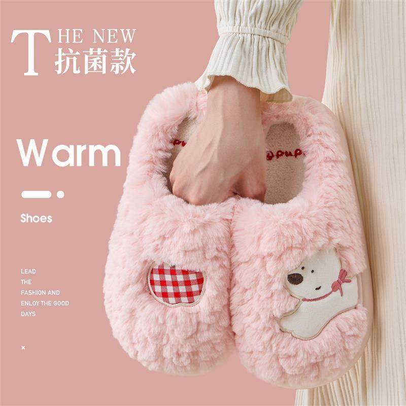 小狗棉拖鞋女款冬季厚底防滑可爱毛绒茸茸室内家居保暖鞋2025新款