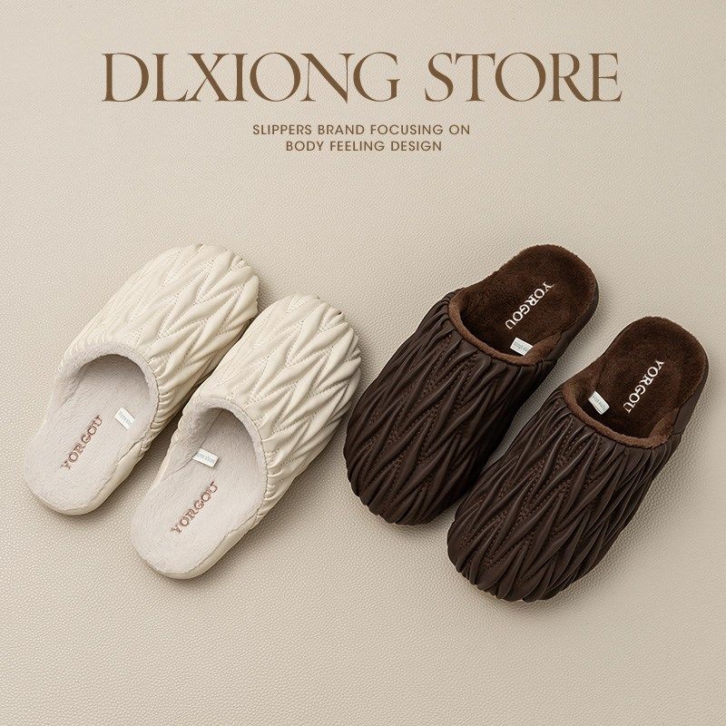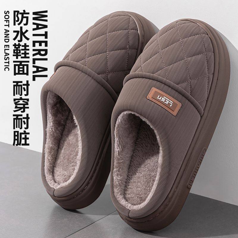 防水棉拖鞋女秋冬季情侣居家居防滑男室内保暖加绒皮面拖2024新款
