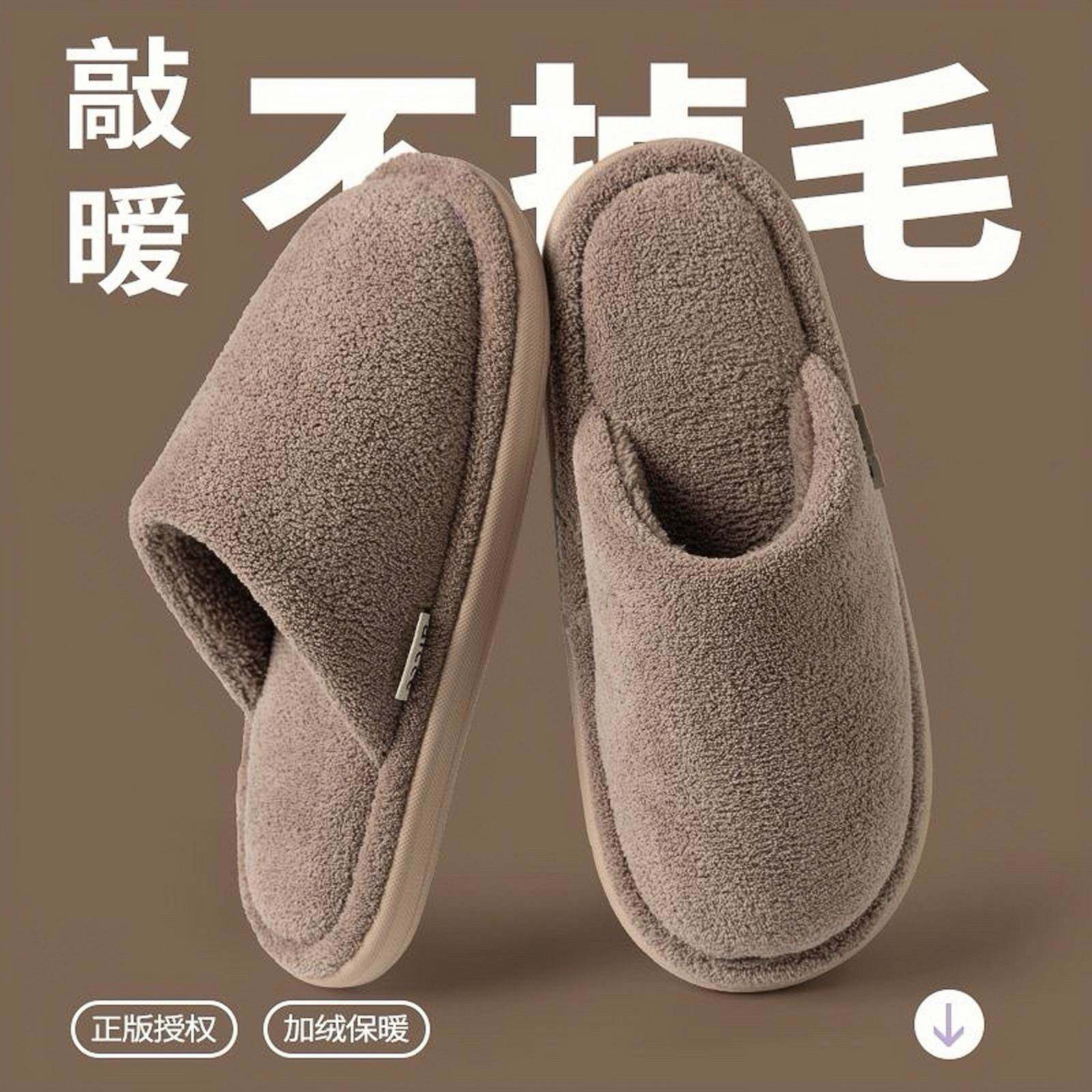高端毛绒棉拖鞋男士秋冬季家居室内防滑静音舒适日系保暖地板拖鞋