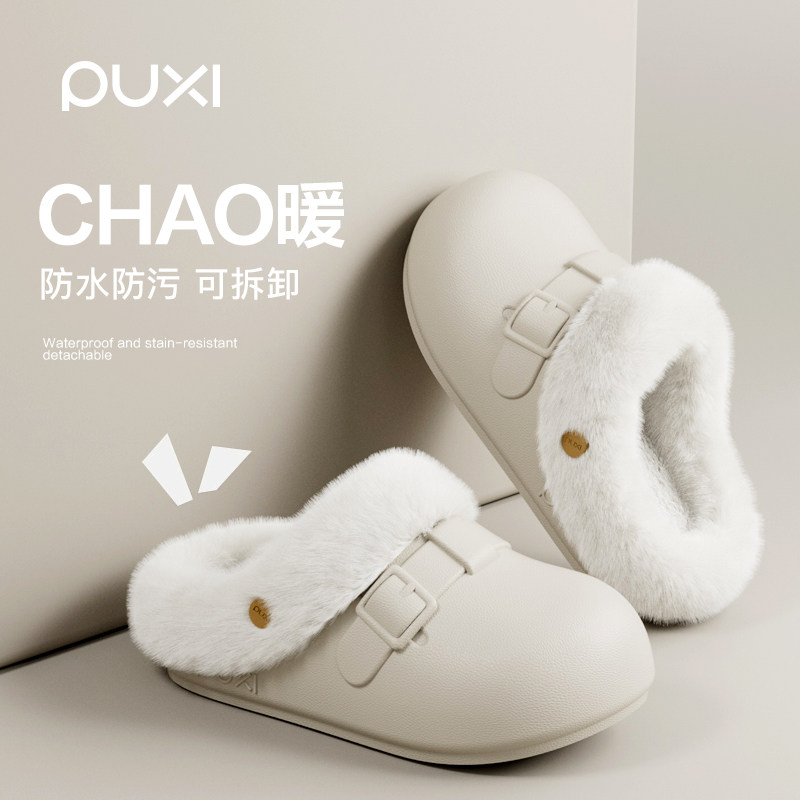 朴西可拆卸防水博肯棉拖鞋女冬季保暖居家防滑静音简约情侣棉拖男