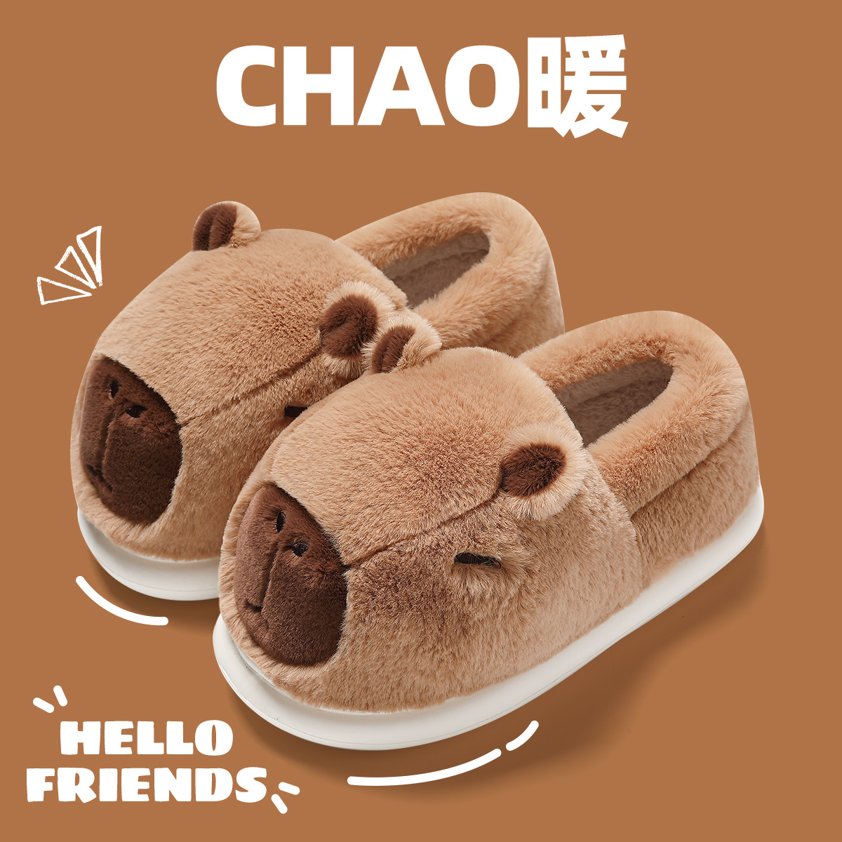 卡皮巴拉棉拖鞋女包跟冬季2025新款情侣居家保暖厚底加绒亲子棉鞋