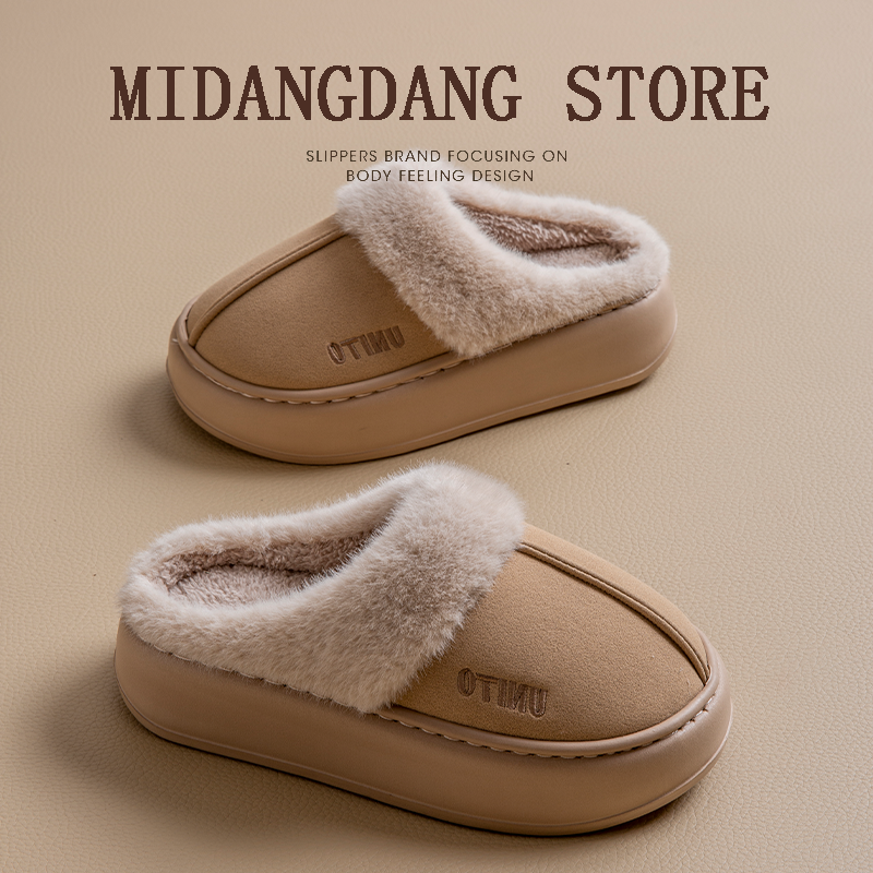 买一送一棉拖鞋女情侣秋冬季室内家居防滑厚底踩屎感保暖毛拖鞋男