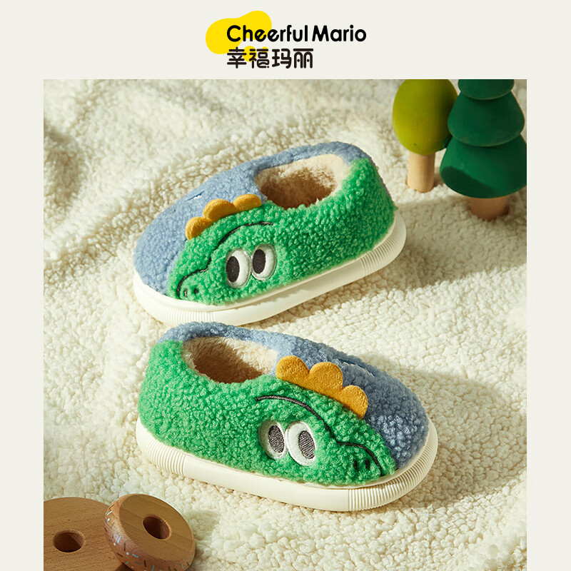 幸福玛丽恐龙儿童拖鞋男童秋冬亲子可爱家居室内中大童男孩亲子保暖棉拖鞋 天蓝色 30 内长20cm 适合脚长19cm