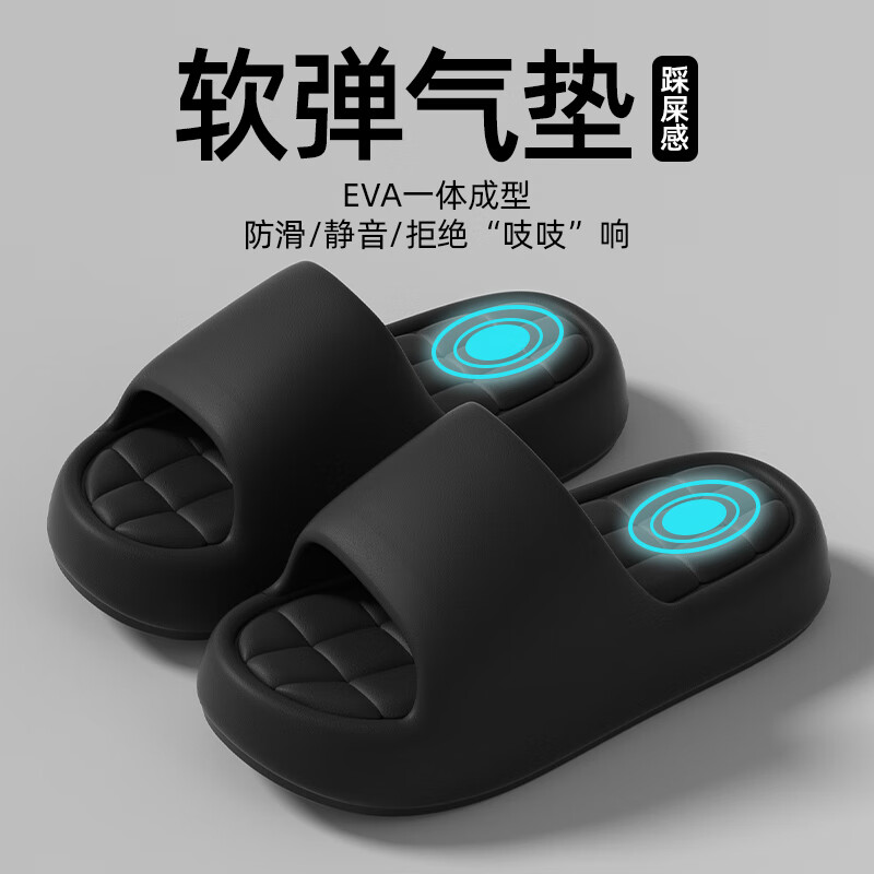 厚底拖鞋男士夏季居家居室内洗澡防滑踩屎感软底外穿情侣凉拖鞋男 黑色 40-41 码【适合39-40脚穿】
