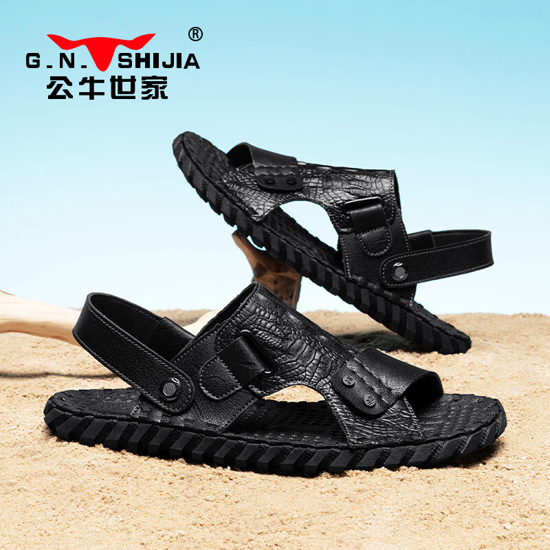 公牛世家凉鞋男夏季新款透气休闲舒适沙滩鞋外穿轻便软皮软底皮凉拖鞋男