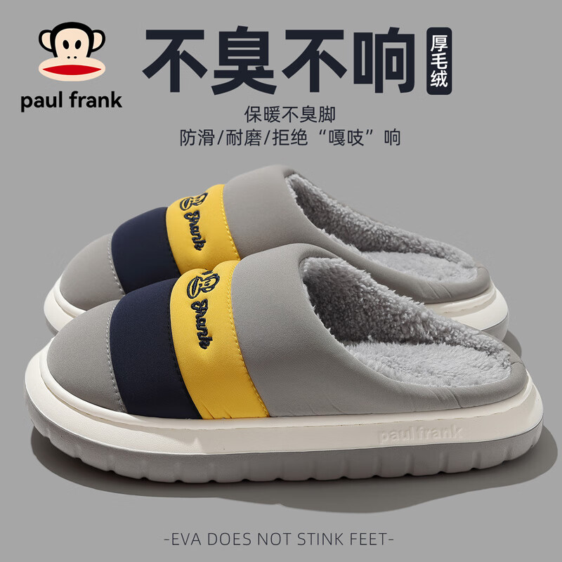 大嘴猴大嘴猴棉拖鞋男士秋冬季2025新款室内家居厚底防滑毛绒保暖棉鞋男 灰色 42-43 适合41-42【内长260MM】