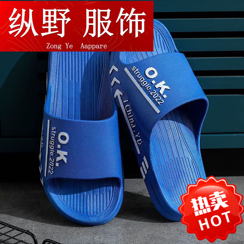 靠森(Kaooseen)拖鞋男款外穿外出潮流防滑夏天家用软底厚底浴室室内居家男 OK-2118-蓝色 38-39 OK