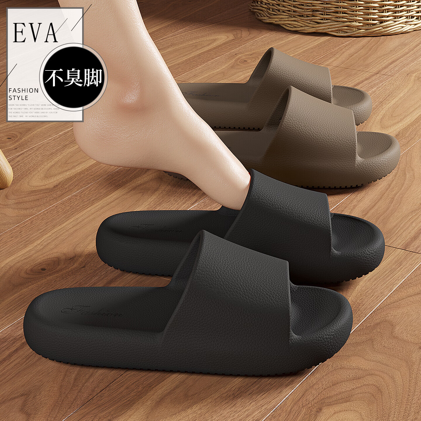 红豆休闲拖鞋男士2026新款素面室内家居浴室洗澡防滑情侣eva凉拖女款 无极黑【摩卡拖鞋】 42-43 正码