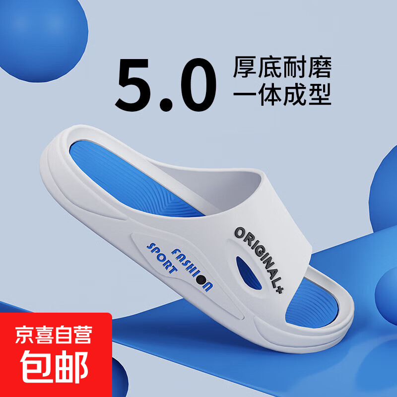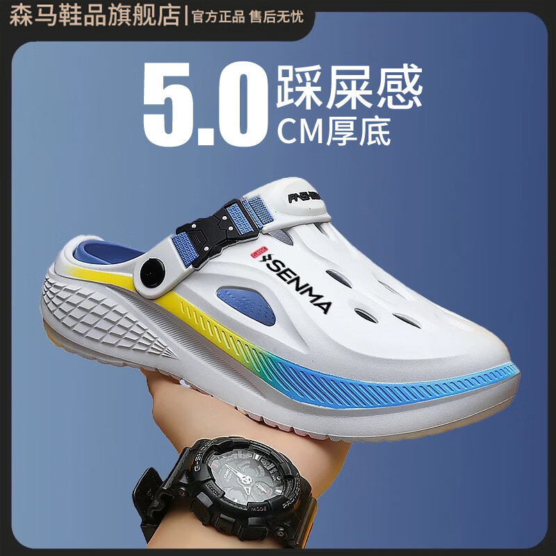 森馬包头拖鞋男夏季外穿防滑厚底耐磨踩屎感洞洞鞋网红爆款沙滩凉拖鞋 白蓝 【基础款】 41 (40-41同码)