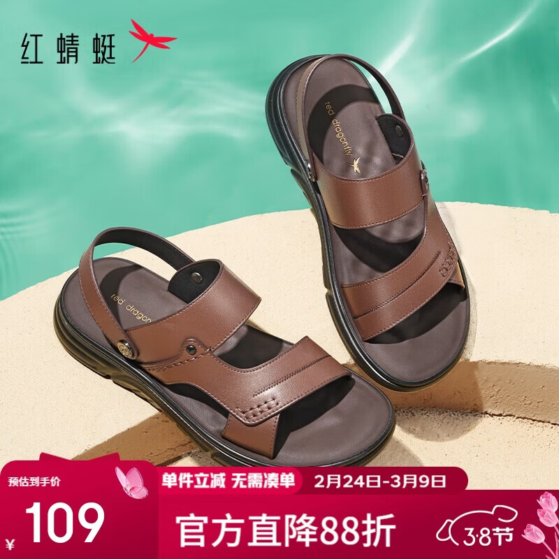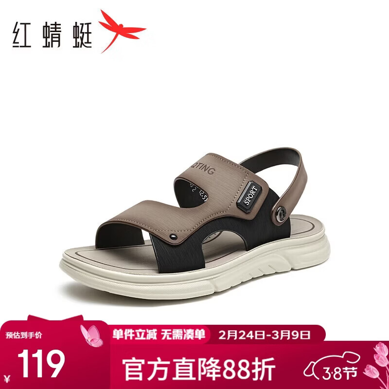 红蜻蜓沙滩鞋夏季舒适软底防滑透气爸爸凉鞋两穿凉拖鞋WTT24124 棕色 42