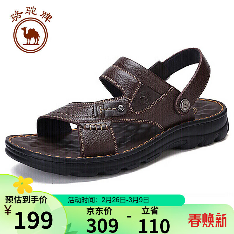 骆驼牌 男鞋休闲拖鞋真皮凉鞋牛皮透气耐磨沙滩鞋 W822287612棕色43码