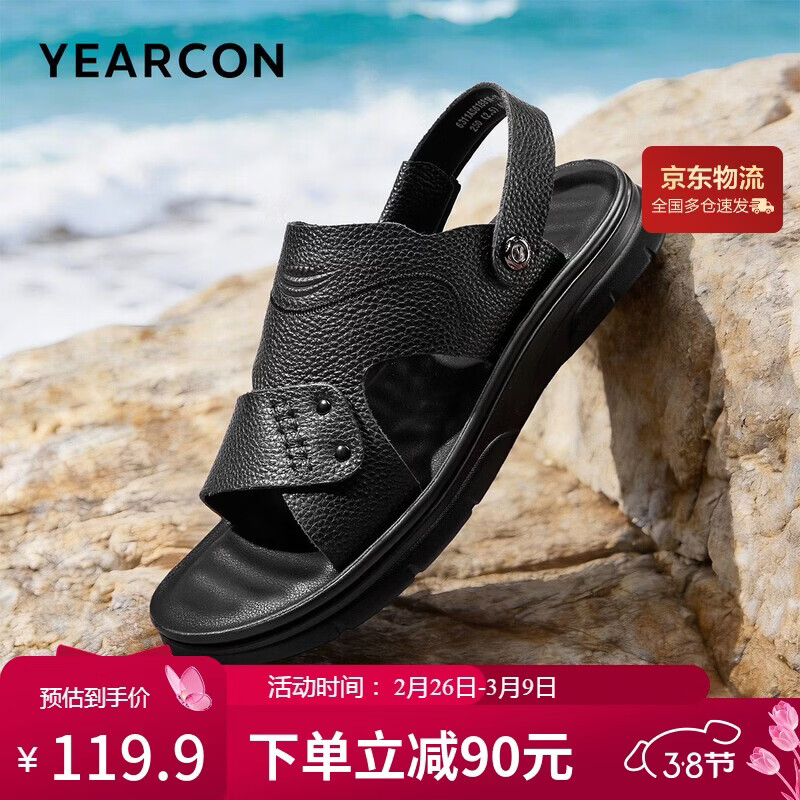 意尔康男鞋软底透气户外休闲拖鞋两用沙滩鞋男士凉鞋 61881W黑色 39
