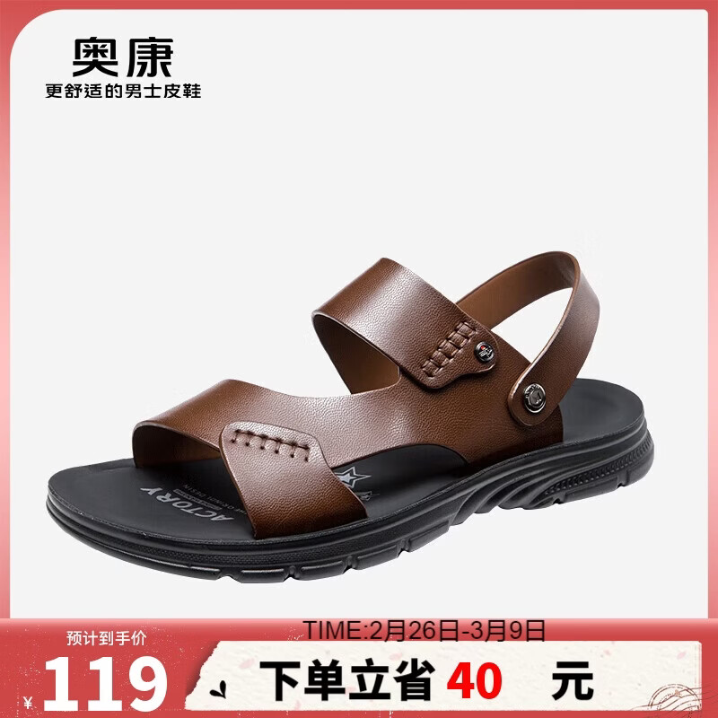 奥康(Aokang)官方男凉鞋 夏季沙滩鞋软底舒适透气两穿男拖鞋休闲鞋棕色40码