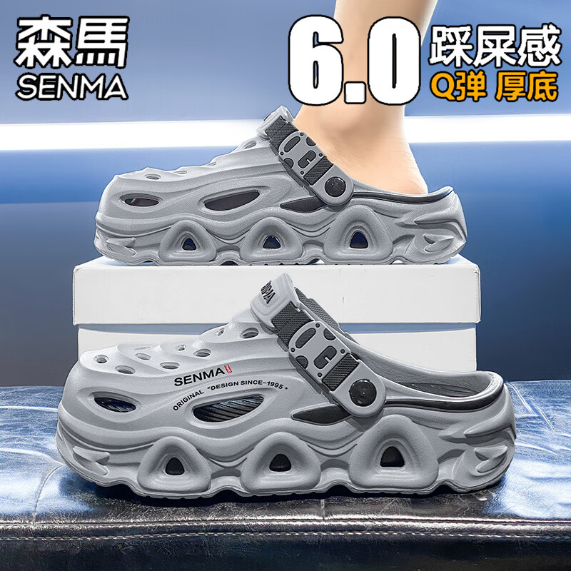 森馬包头拖鞋男夏季外穿防滑防臭踩屎感洞洞鞋开车两用休闲沙滩凉拖鞋 灰色 【基础款】 42 (42-43 同码)