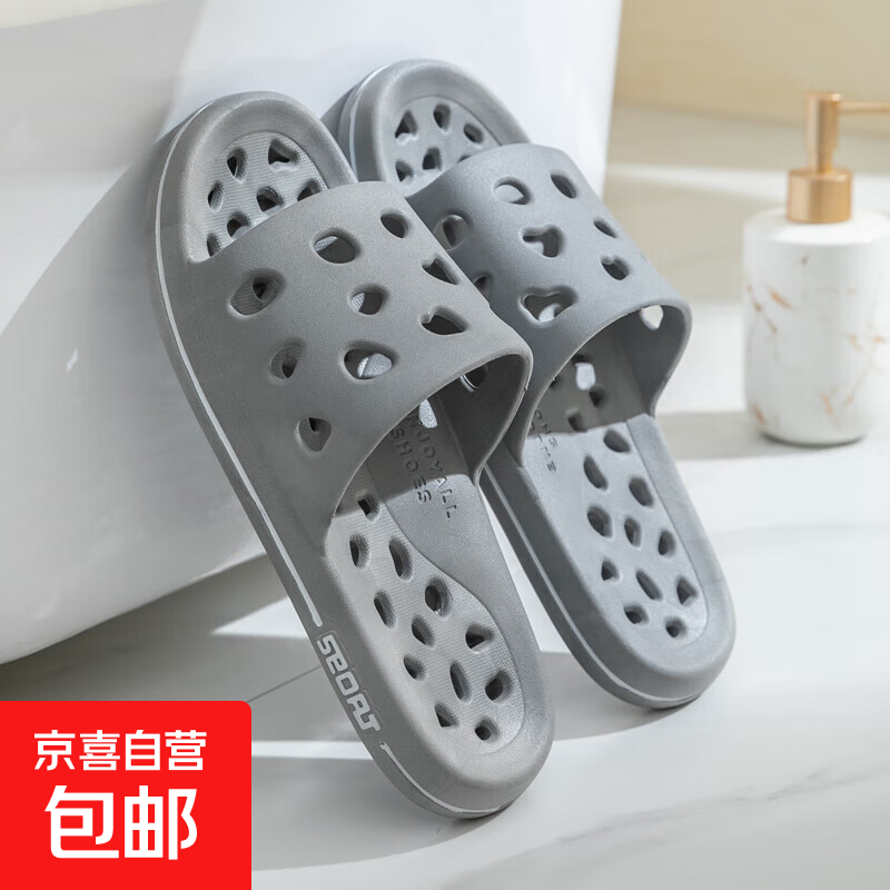 朴西家居拖鞋女夏季居家用室内舒适防滑洗澡浴室轻便速干情侣凉拖鞋女 岩石灰 42-43