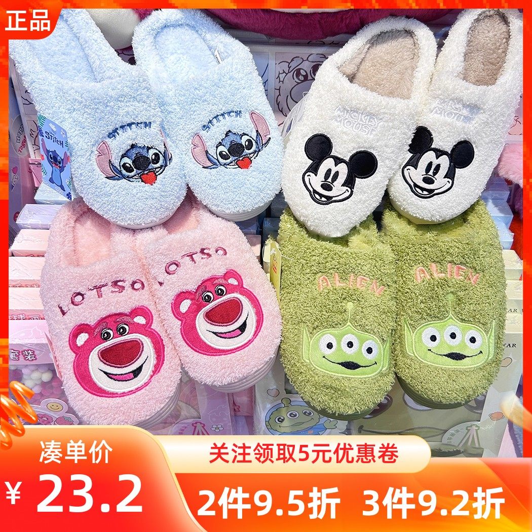 MINISO名创优品迪士尼系列棉拖草莓熊三眼仔史迪仔毛绒居家拖鞋女