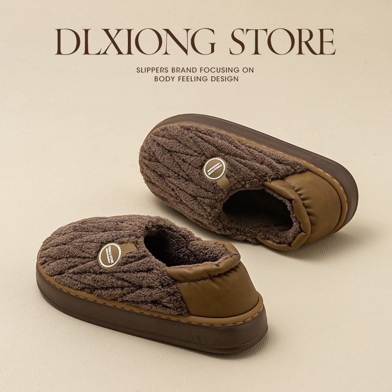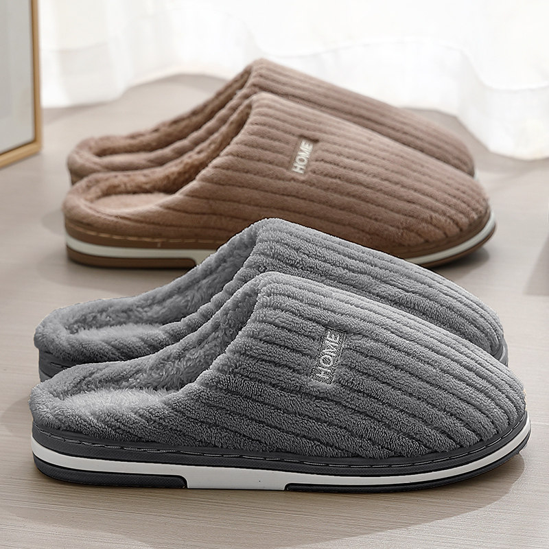 朴西秋冬季新款保暖棉拖鞋男家居室内防滑情侣软底简约加绒棉拖女