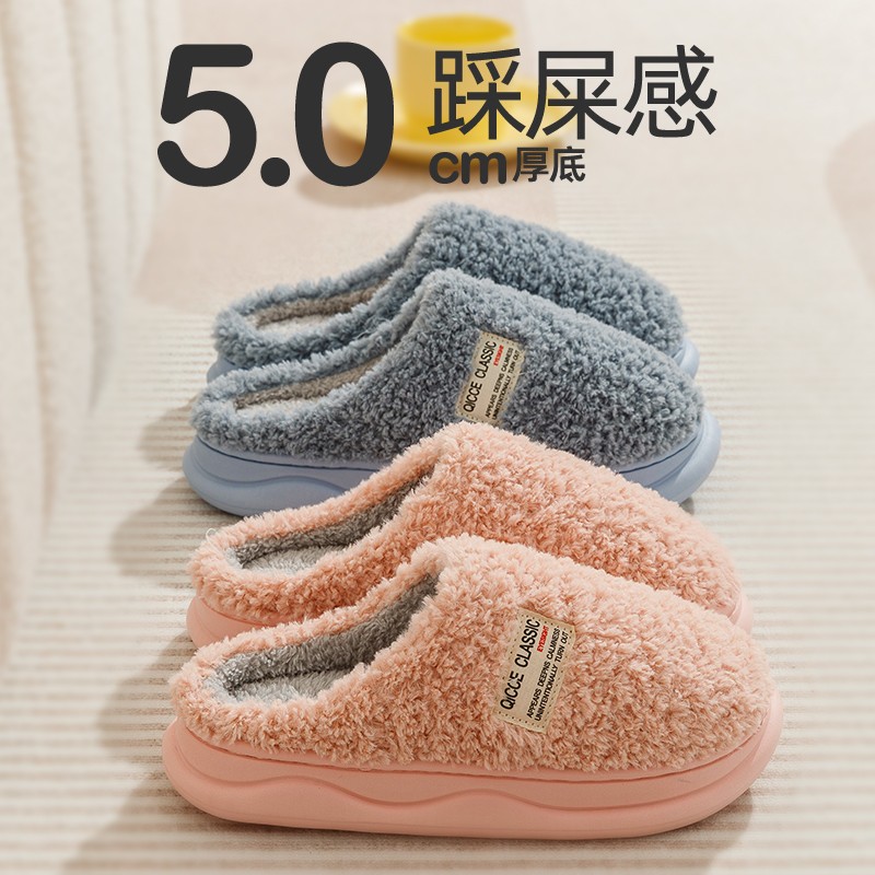 冬季棉拖鞋女厚底室内居家保暖舒适加绒家用防滑情侣毛毛拖鞋男士