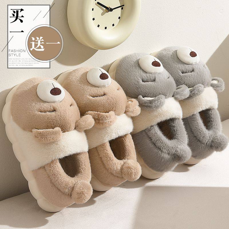 买1送1棉拖鞋女士冬季包跟2024新款情侣家居一对带后跟毛绒棉鞋男