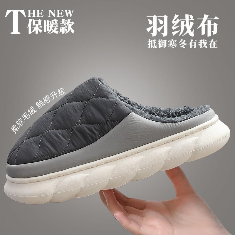 羽绒棉拖鞋男士冬季2024新款特大码室内家居厚底防滑大号保暖棉拖