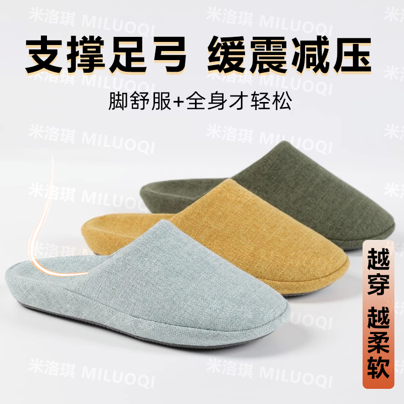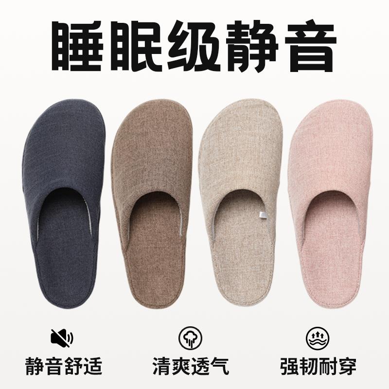 静音棉麻拖鞋地板情侣春秋四季室内家用EVA防滑男士机洗女士棉拖
