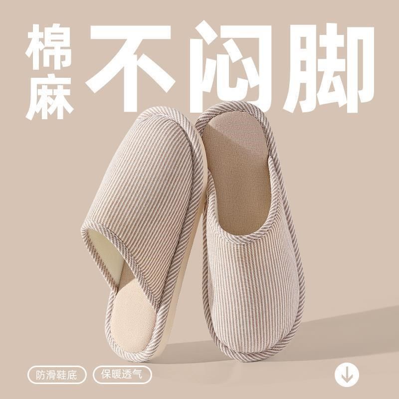 棉拖鞋女士冬季2024新款室内家居情侣家用防滑客人亚麻拖鞋男春秋
