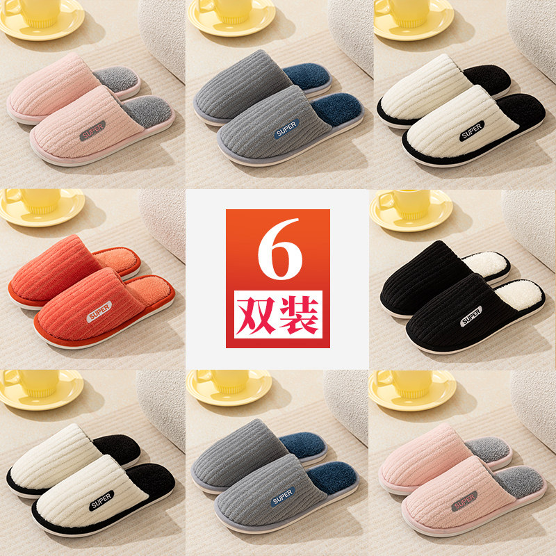 4双装棉拖鞋女冬季室内家居客用2023新款居家用待客毛拖鞋男冬款2