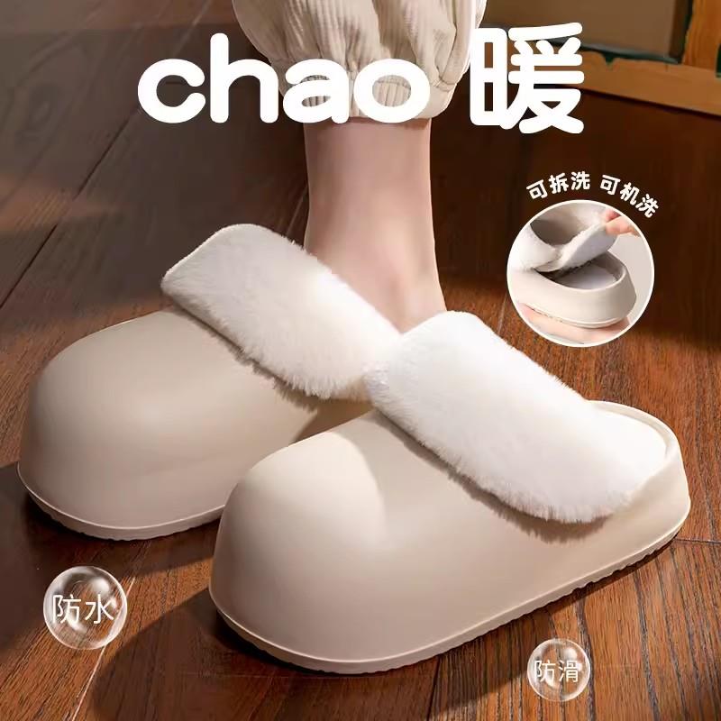 极速丝蒙a妮可拆卸防水棉拖鞋冬天防滑外穿保暖加绒厚底毛毛拖鞋