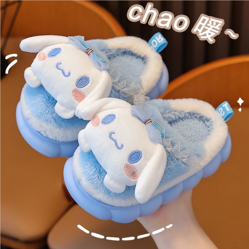 儿童玉桂狗棉拖鞋冬季保暖防寒包跟男女童家居室内防滑可爱毛棉鞋