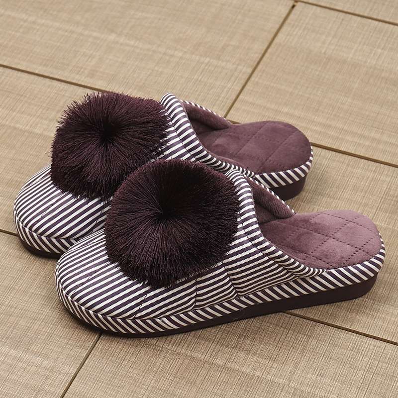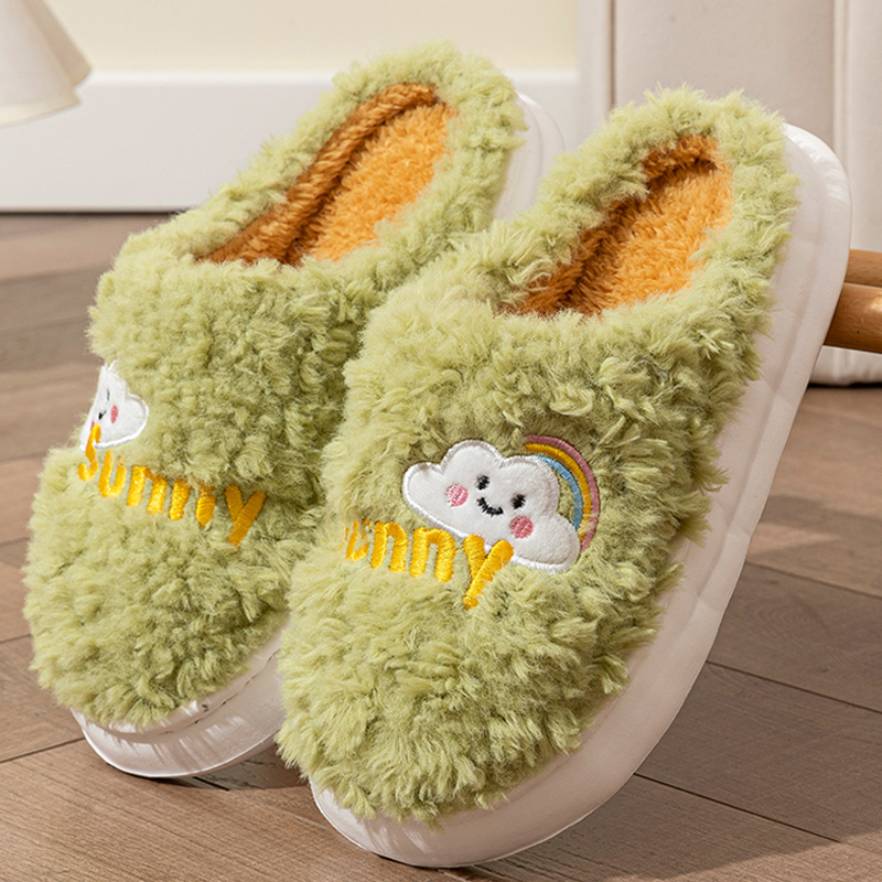 秋冬季可爱卡通毛绒保暖居家室内棉拖鞋女一字防滑毛毛拖鞋女冬天