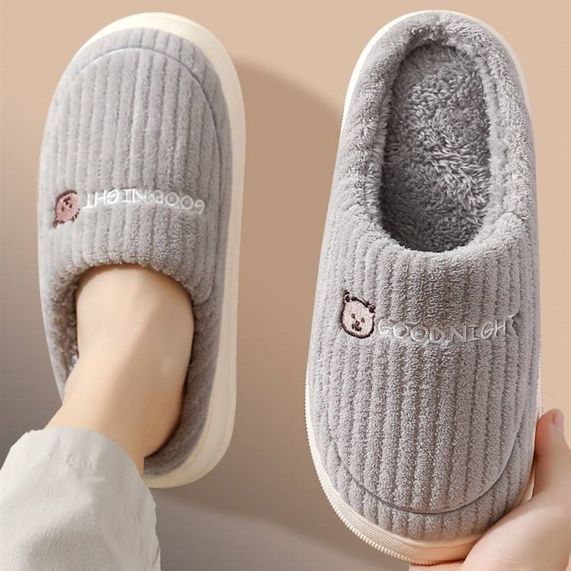 HL/回力棉拖鞋男冬季居家居室内防滑家用地板情侣保暖毛绒拖鞋女