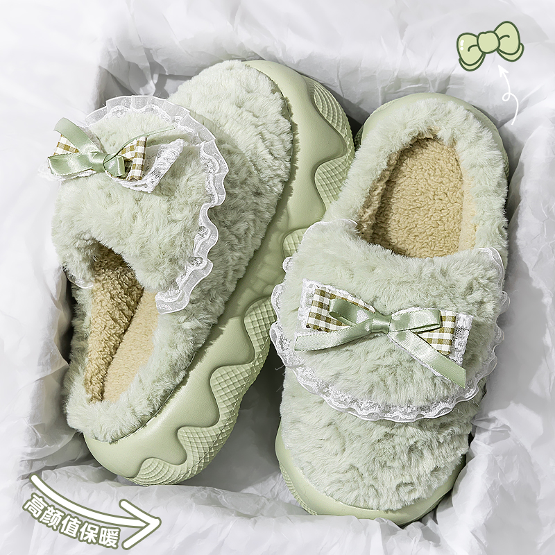 蝴蝶结厚底棉拖鞋女2025新款冬季外穿增高加绒保暖防水防滑棉拖鞋