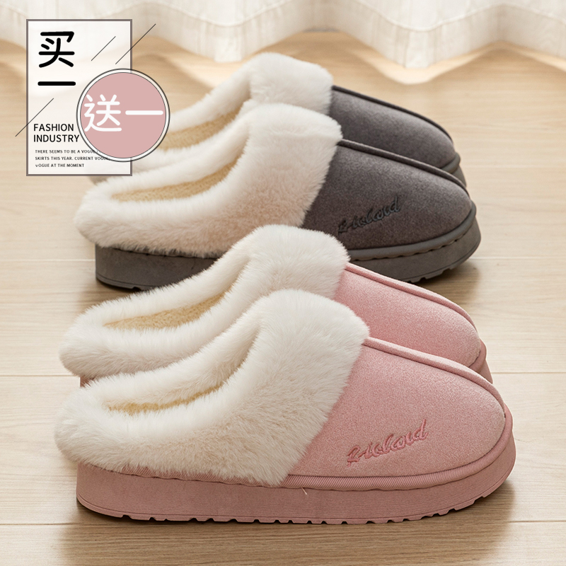 日本无印买1送1静音棉拖鞋女秋冬2025新款家居室内情侣一对保暖毛