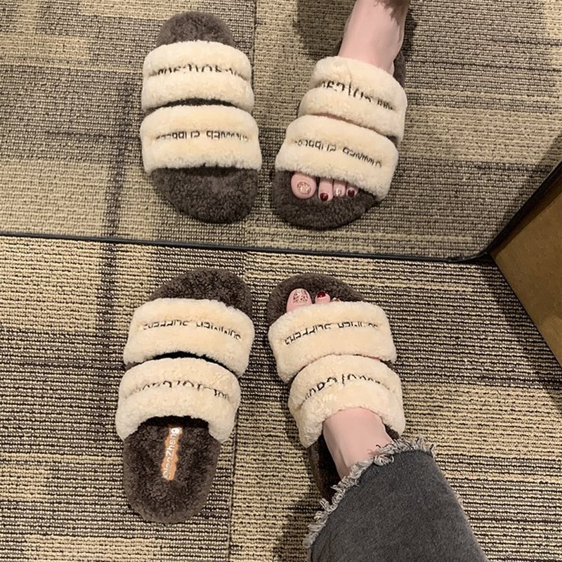 速发韩版毛毛鞋2024年新款办公室居家拖鞋一字厚底棉拖鞋字母拖鞋