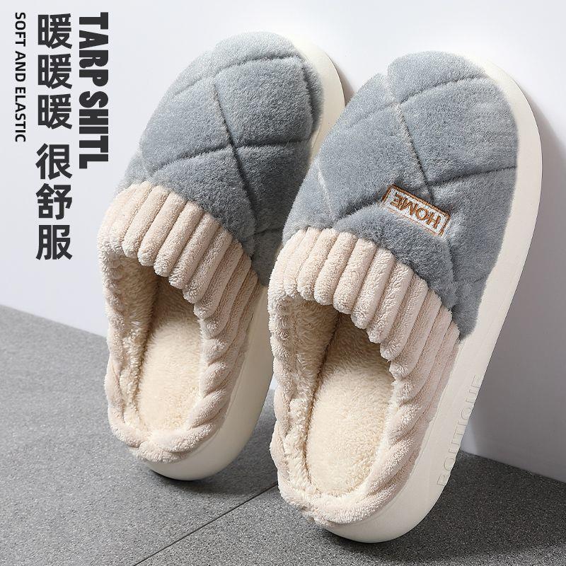 新款直销跨境新款灯芯绒棉拖鞋女家用 春秋季家居保暖室内EVA厚底