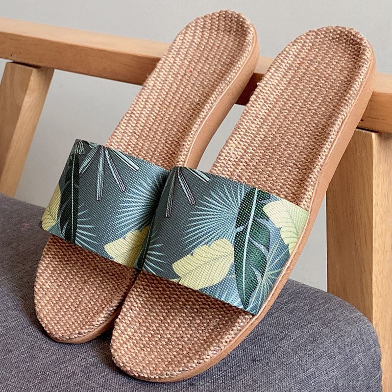 速发四季亚麻拖鞋凉男夏室内情侣家居防滑家用居家办公室卧室平底
