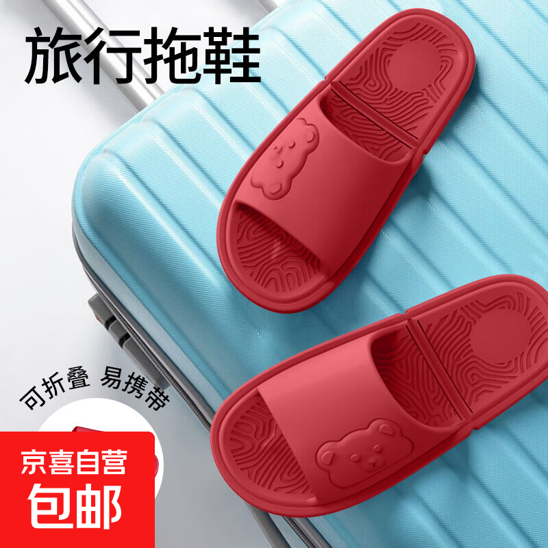 旅行可折叠拖鞋男士家居情侣静音浴室洗澡防滑家用女凉拖 红色 38-39