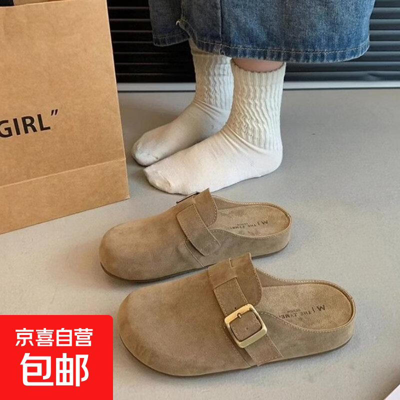 软底勃肯鞋女厚底拖鞋外穿2026春秋新款一脚蹬博肯包头半拖鞋棉拖 卡其色 38