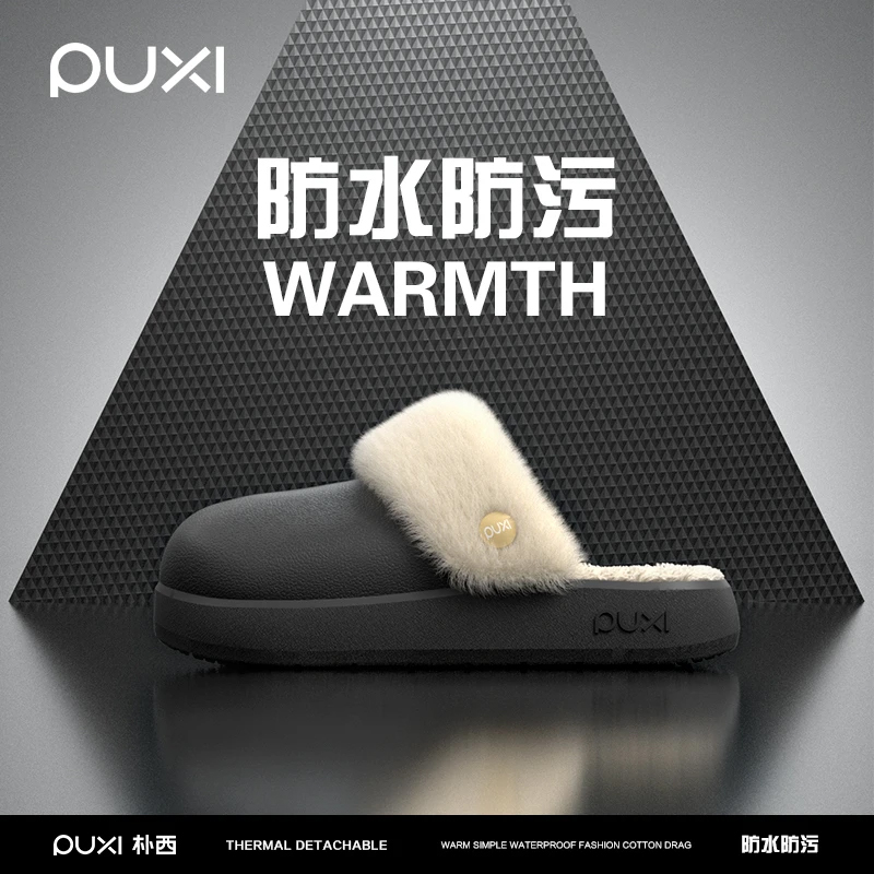 朴西2024新款男士外穿高级感棉拖鞋冬季室内保暖防水可拆卸棉拖女