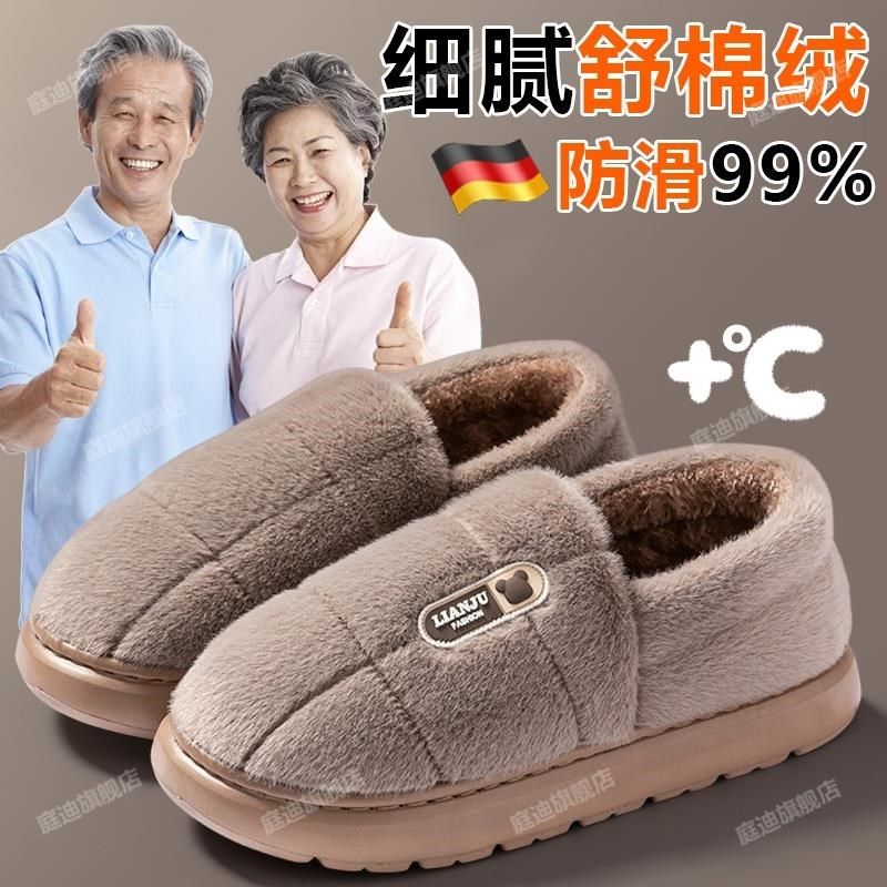 老人棉拖鞋防滑防水女士秋冬季2024新款室内家居保暖包跟棉鞋男款