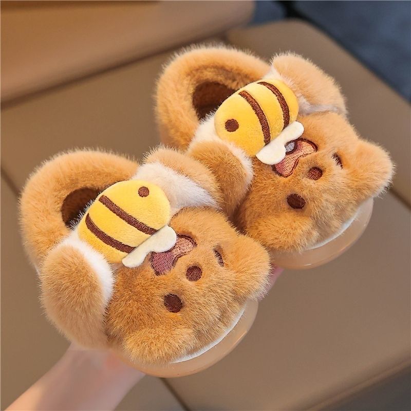 儿童棉拖鞋包跟卡通男小孩室内家用保暖毛绒拖鞋女宝宝防滑居家鞋