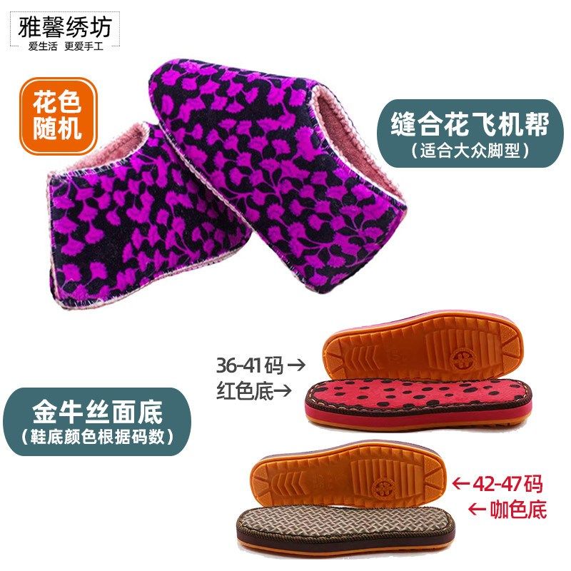 雅馨绣金牛鞋底手工钩编织棉拖鞋帮防滑耐磨坊丝面牛筋新款