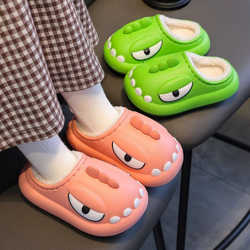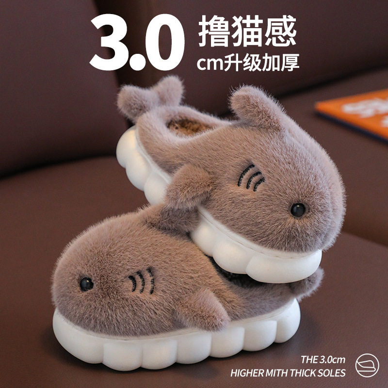 儿童棉拖鞋冬季男女童卡通可爱鲨鱼个性居家保暖加厚毛绒拖鞋
